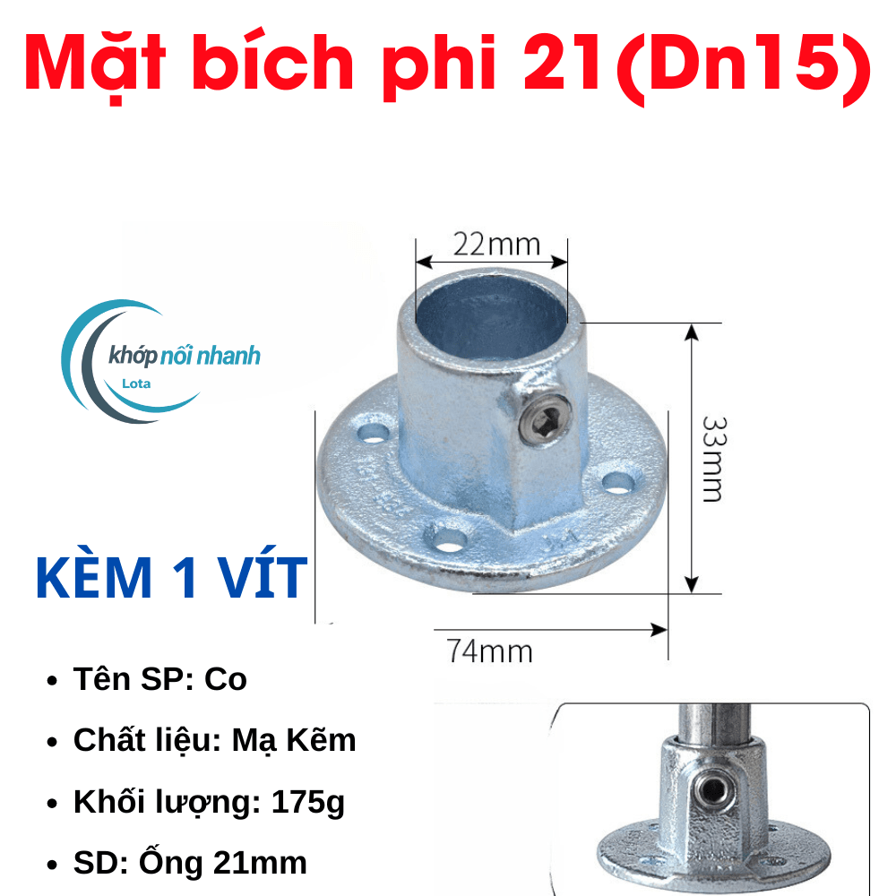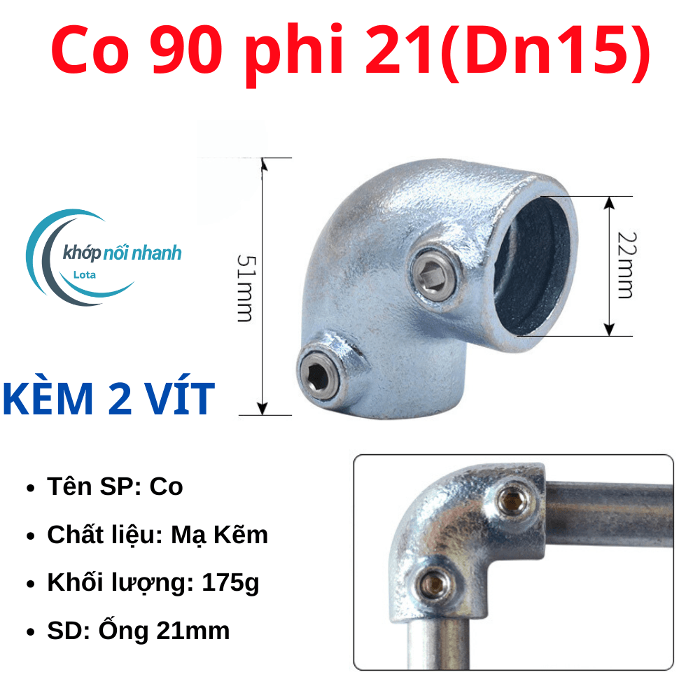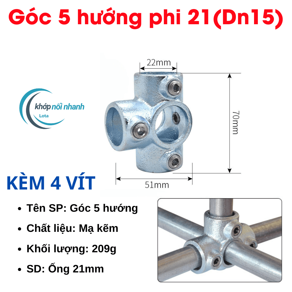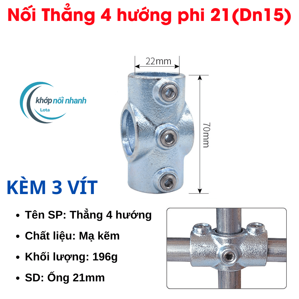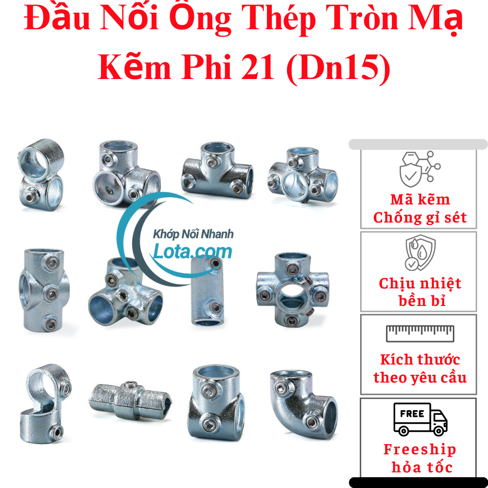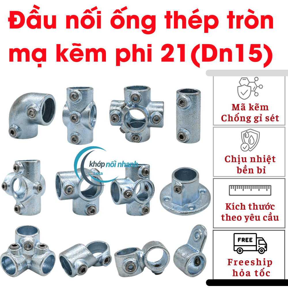 Khớp nối nhanh ống sắt tròn Phi 21 (21mm) vặn ốc lục giác khớp nối nhanh ống sắt lota được cố định bằng ốc lục giác thuận tiện tháo lắp