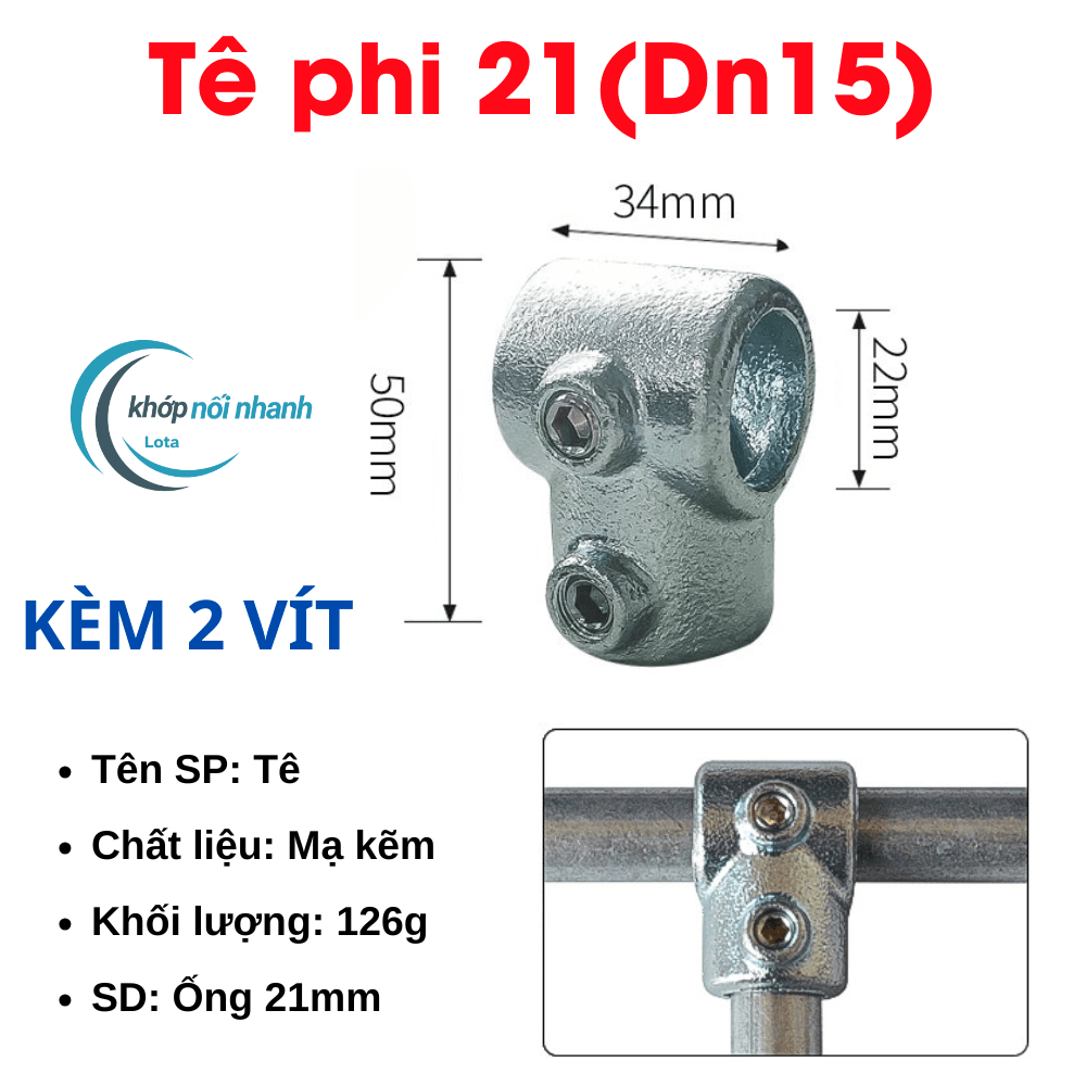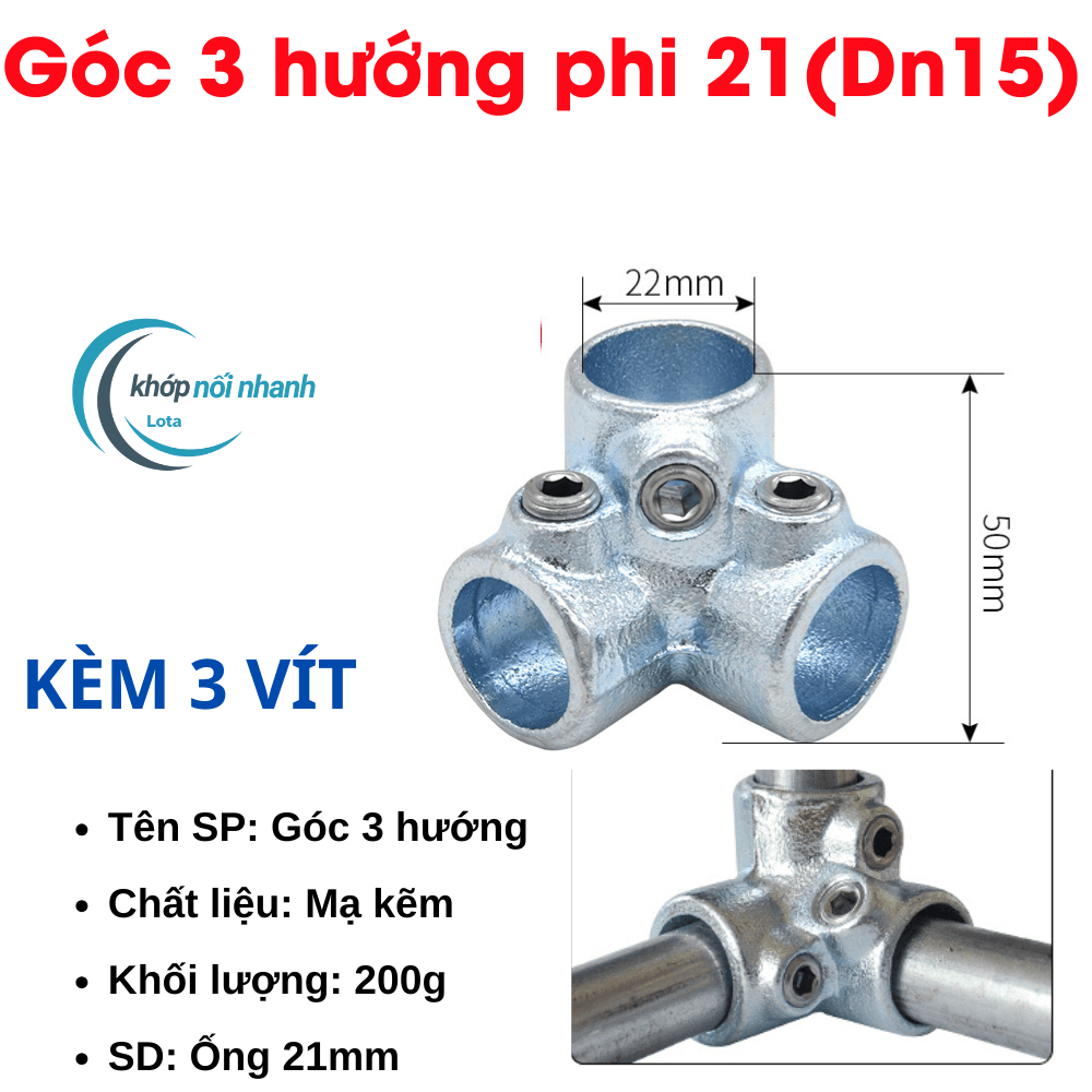 Bộ phụ kiện khớp nối dành cho ống sắt Phi 21 ( 21mm) được cố định bằng ốc lục giác INox thuận tiện tháo lắp, di chuyển,