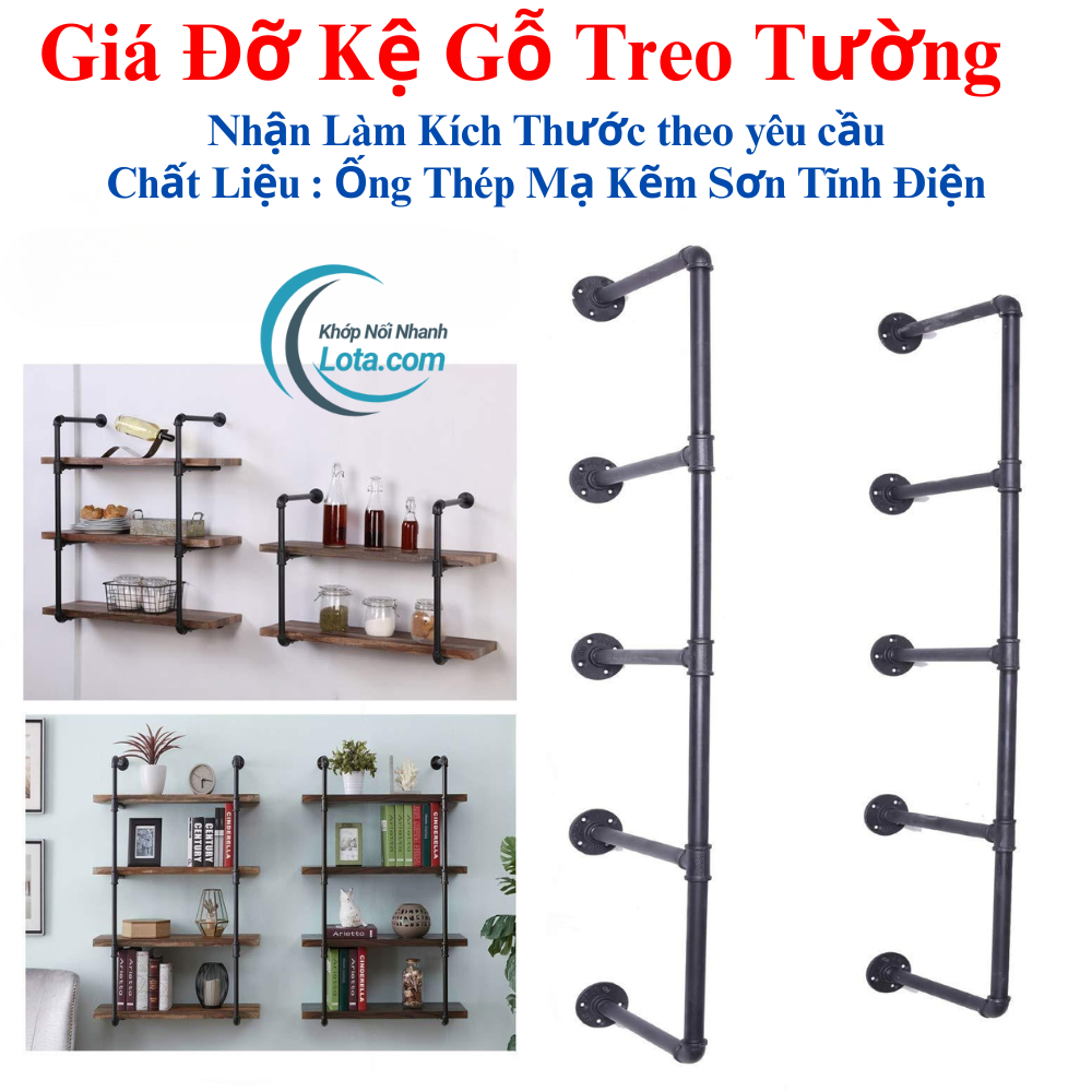Kệ Gỗ Treo Tường 1-2-3-4-5 Tầng Ống Thép Mạ Kẽm Lota KTT001-1T – Giải Pháp Lưu Trữ Thông Minh Cho Mọi Không Gian