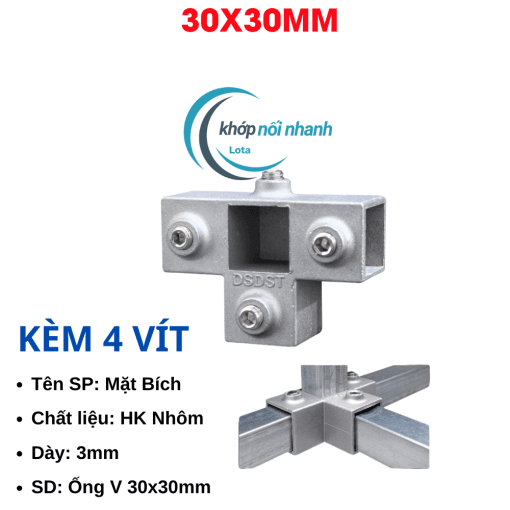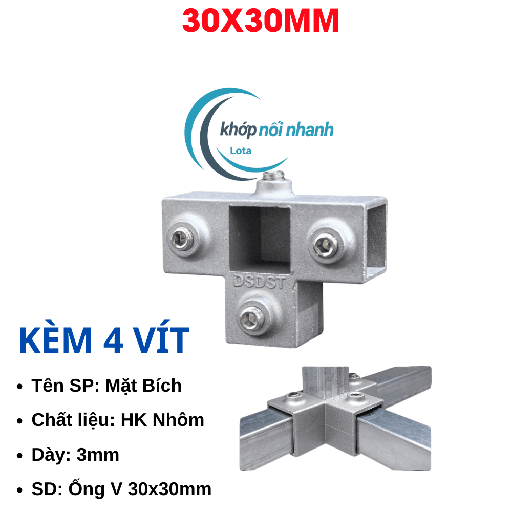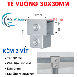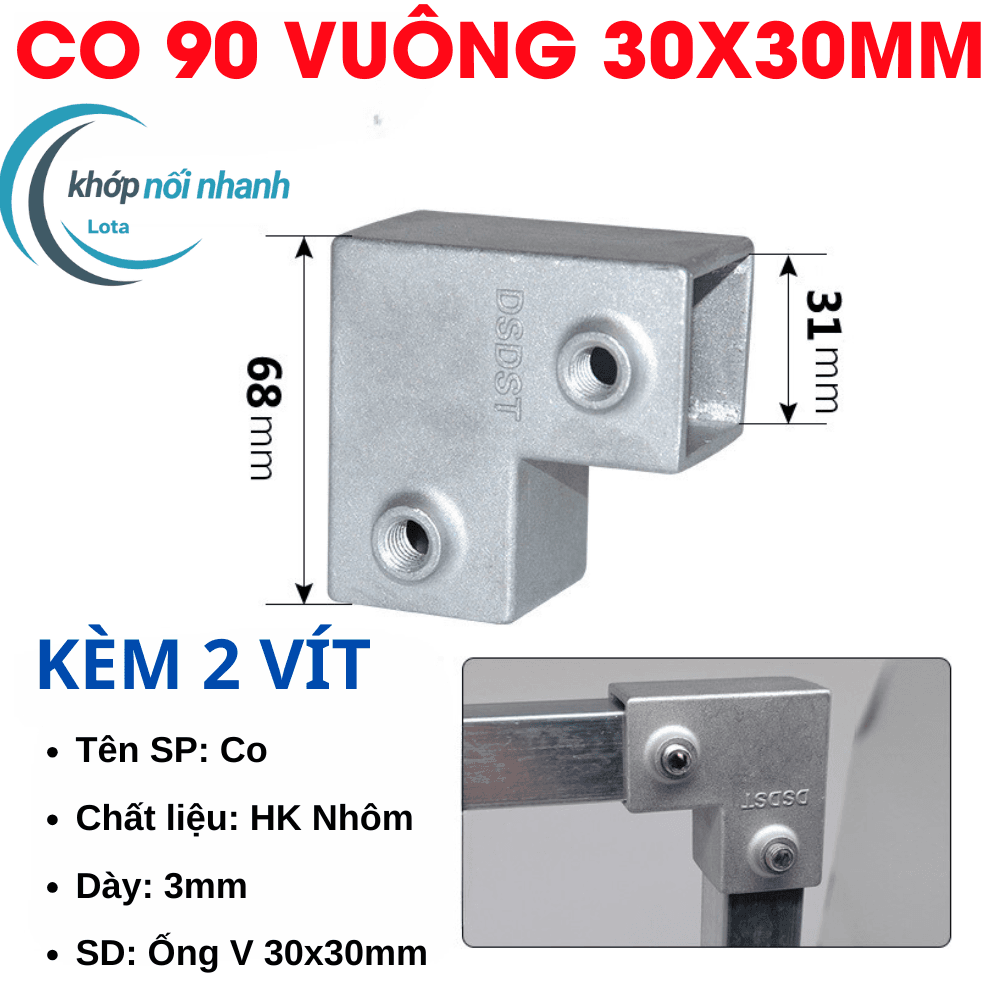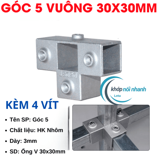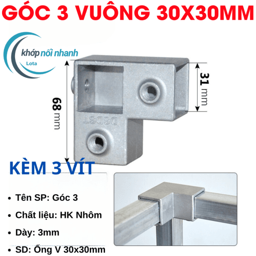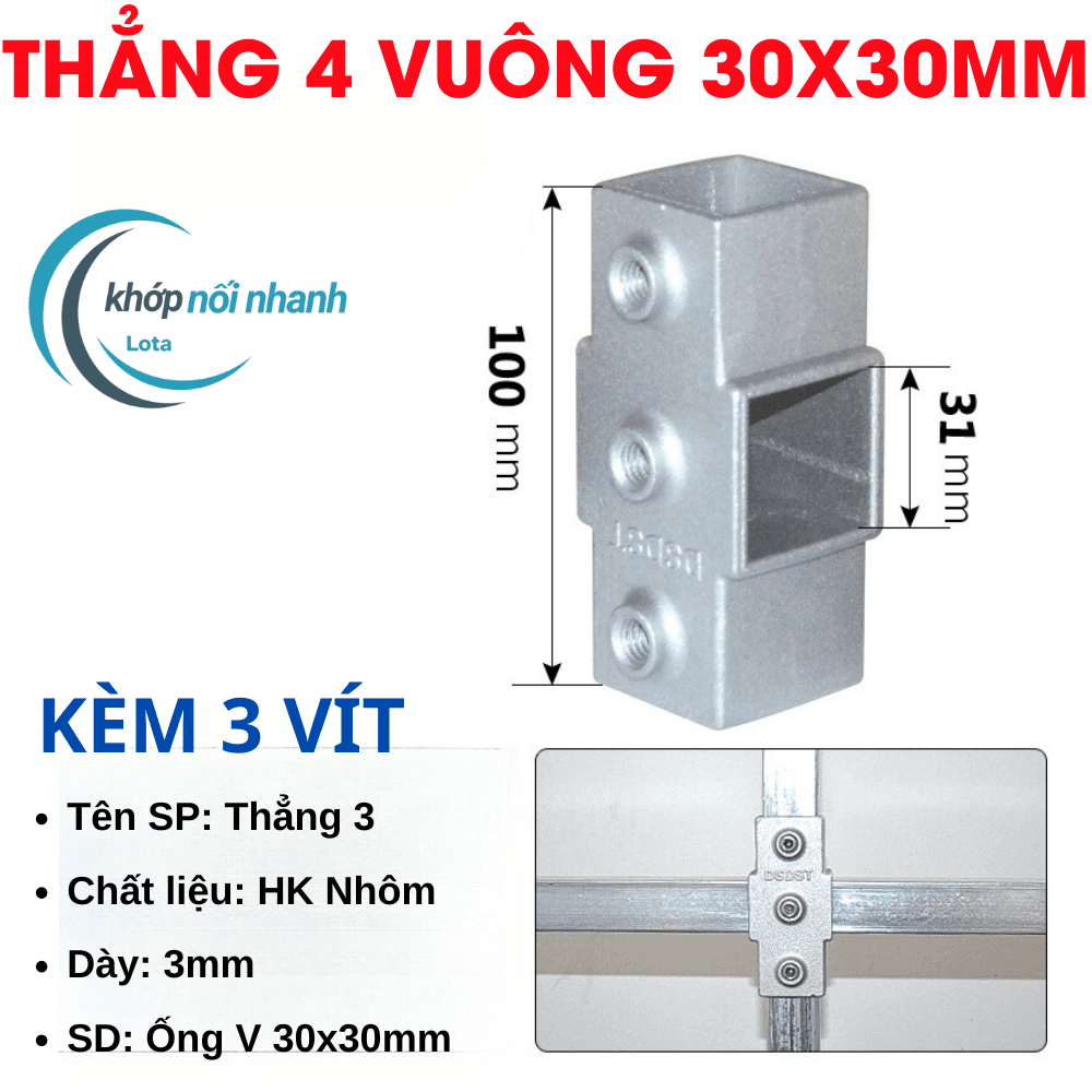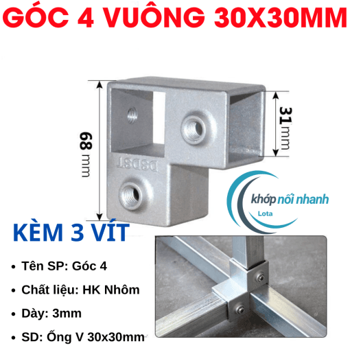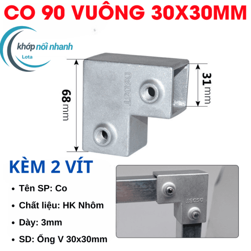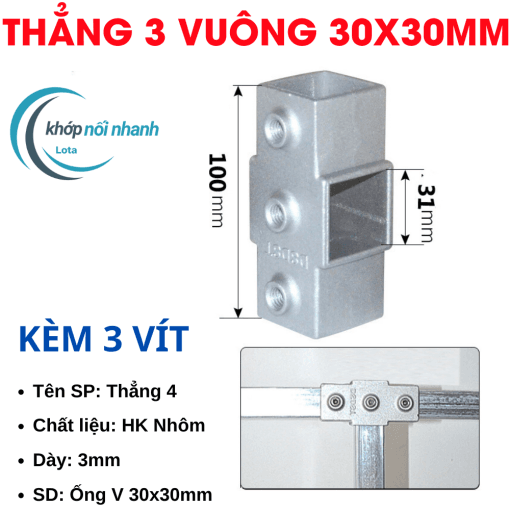 Khớp Nối/Đầu Nối/Co Nối dành cho Sắt Hộp Vuông, Thép Hộp Vuông và Inox Hộp Vuông Phi 30mm thông minh được cố định bằng ốc lục giác 4mm chắc chắn, thuận tiện tháo lắp để di chuyển vật dụng thành phẩm khi cần.