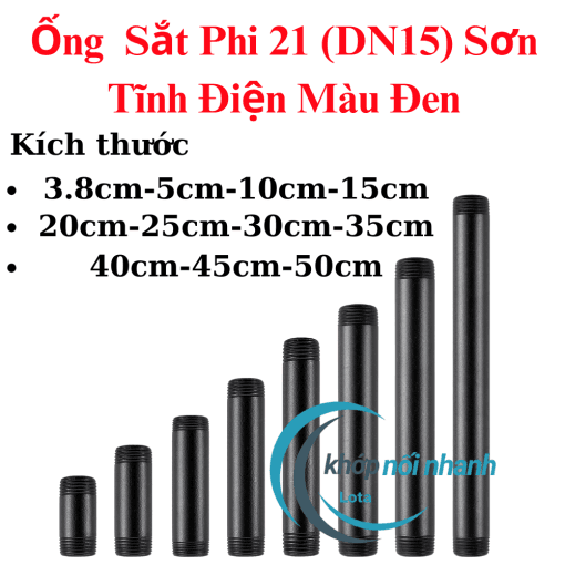 Ống Sắt Phi 21 (Dn15) Sơn Tĩnh Điện Màu Đen Nhiều Kích Thước Lotacom Decor